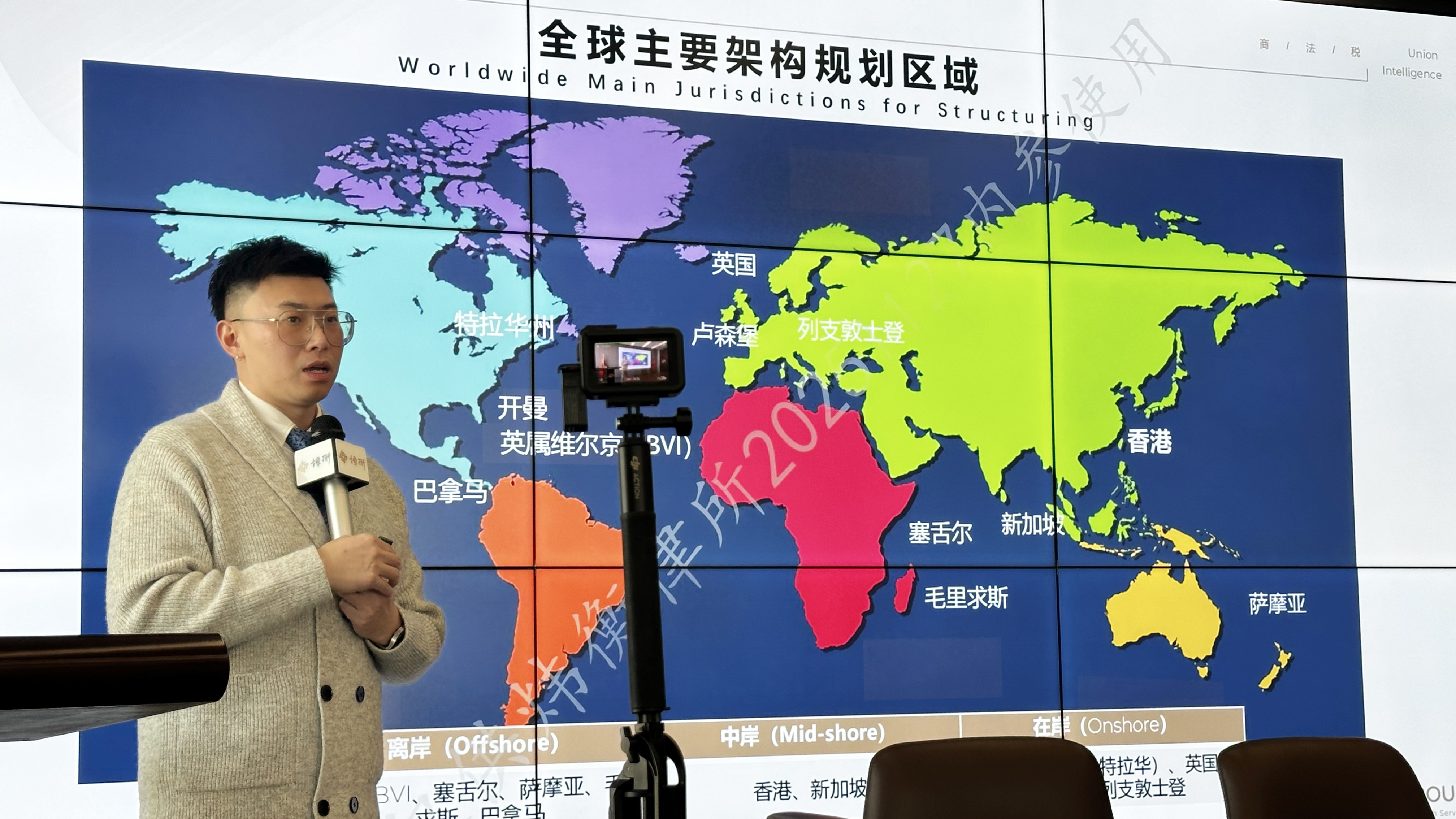 在研讨会上,还分享了全球主要架构规划区域地图。通过这个区域地图强调跨境架构的本质不是选一个地方,而是需要明确功能、设计“分层结构”。尤其是在监管环境全球收紧后,企业需要“更透明、更稳健”的多层结构,而不是简单的离岸公司组合。