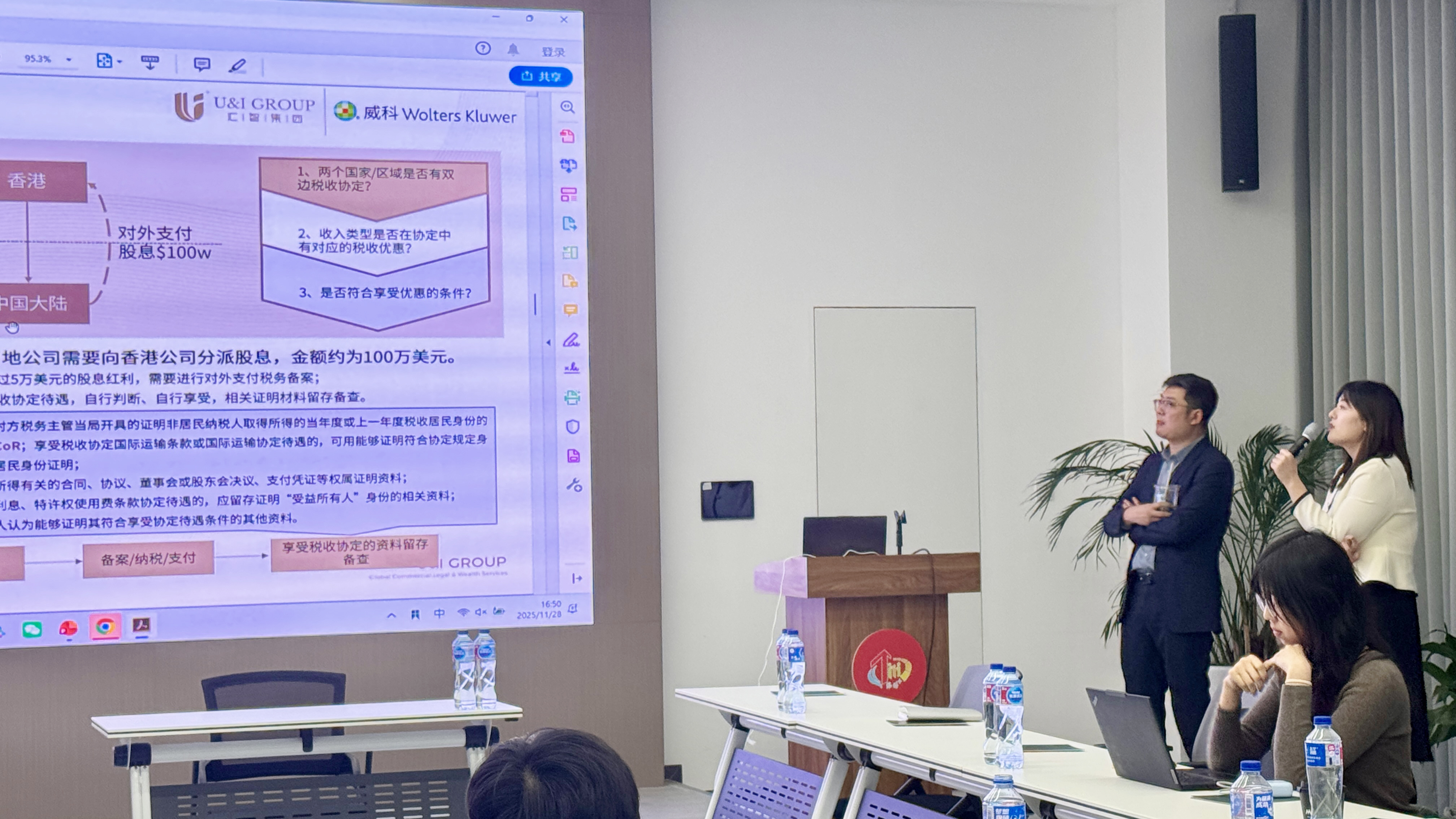 在全球竞争格局深度演进的背景下,中国企业的出海发展正经历从规模扩张向高质量全球化的重要转型。面对财税合规、跨境资金与风险管理等核心挑战,企业亟需系统化的解决方案与前瞻性的战略指引。为此,U&I GROUP(汇智集团)携手威科集团,于2025年11月28日成功举办 “香港:企业出海的‘超级联系人’——财税优势全攻略与全球化实战指南” 专题研讨会,助力企业把握香港平台优势,稳健推进国际化布局。